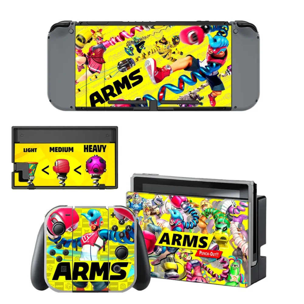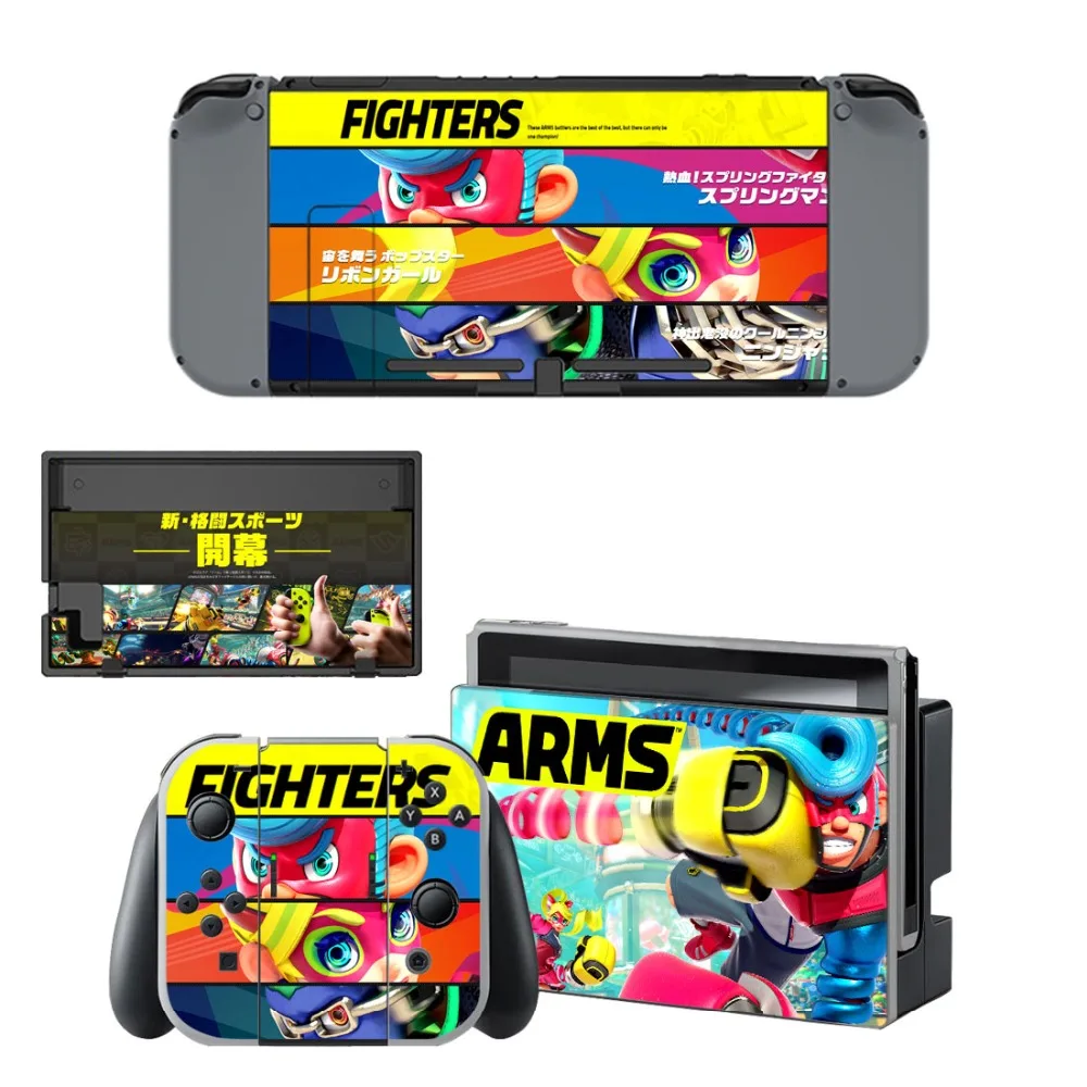Installing your Nintendo Switch ARMS Skin is a breeze. Begin by cleaning the surface of your console to ensure optimal adhesion. Carefully peel the skin, avoiding contact with unwanted surfaces, and place it on your console. For best results, apply gentle heat during cooler weather to ensure a smooth application. The package includes skins for your Nintendo Switch Console, Controller, and Stand, providing complete coverage and customization.