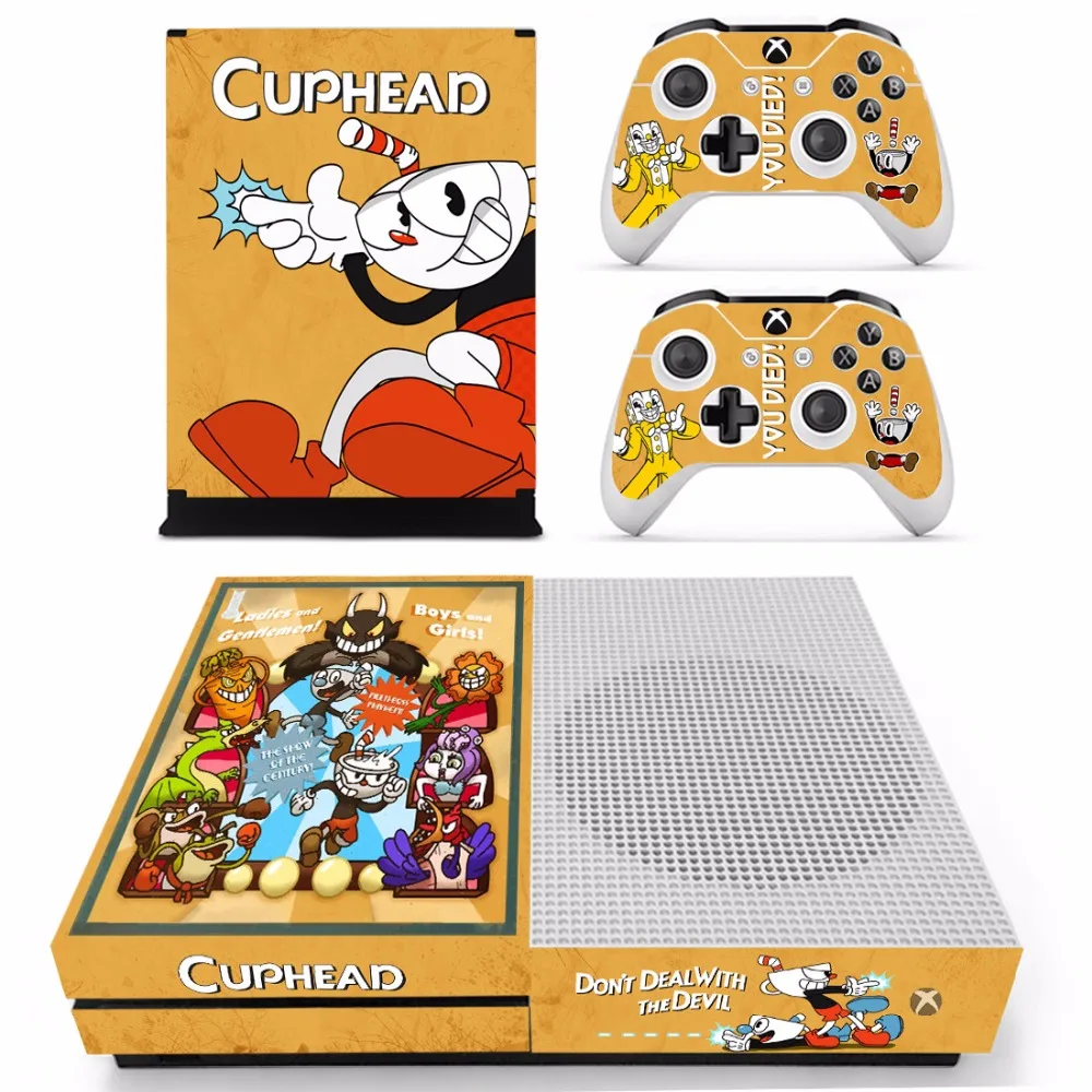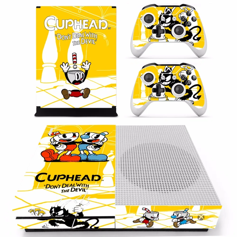 Dive into the whimsical world of Cuphead with this meticulously crafted skin sticker designed specifically for the Microsoft Xbox One S console and its controllers. For fans of the iconic game and its nostalgic art style, this Xbox accessory is a perfect match, offering both style and protection.