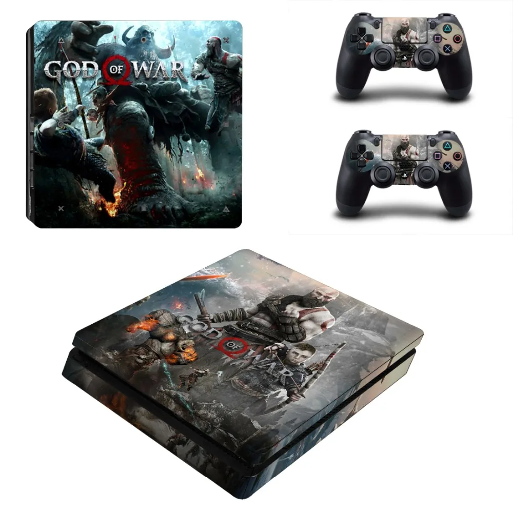 God of War 4 PS4 Slim Skin Sticker Decal Vinyl for Dualshock Playstation 4 Console and 2 Controllers PS4 Slim Skin Sticker