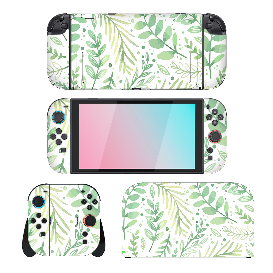 Green And White Leaves Pattern Nintendo Switch 2 Skin Sticker Decal