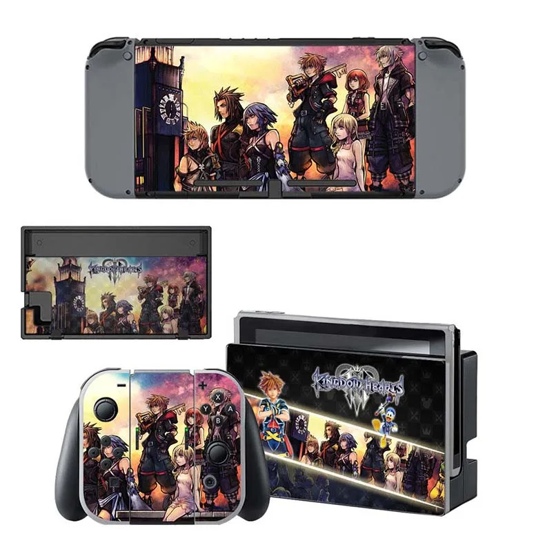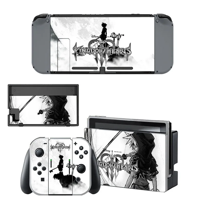 Enhance your Nintendo Switch with this stunning Kingdom Hearts custom console decal. The package includes faceplate stickers for the front and back of the dock, the back of the console, and the Joy-Con grip, providing a cohesive and magical look that any Kingdom Hearts fan will adore.