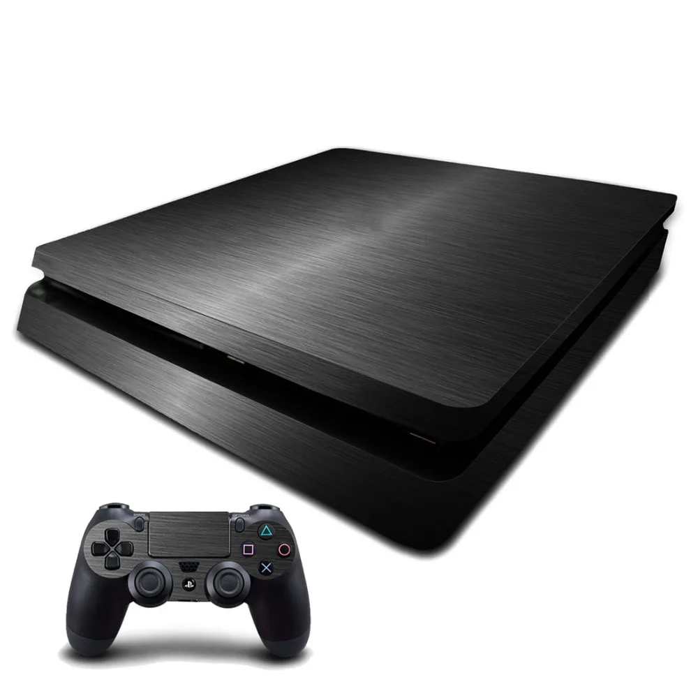 Metal Brushed PS4 Slim Skin Sticker Decal for Sony PlayStation 4 Console and 2 Controller Skin PS4 Slim Sticker Vinyl Accessory